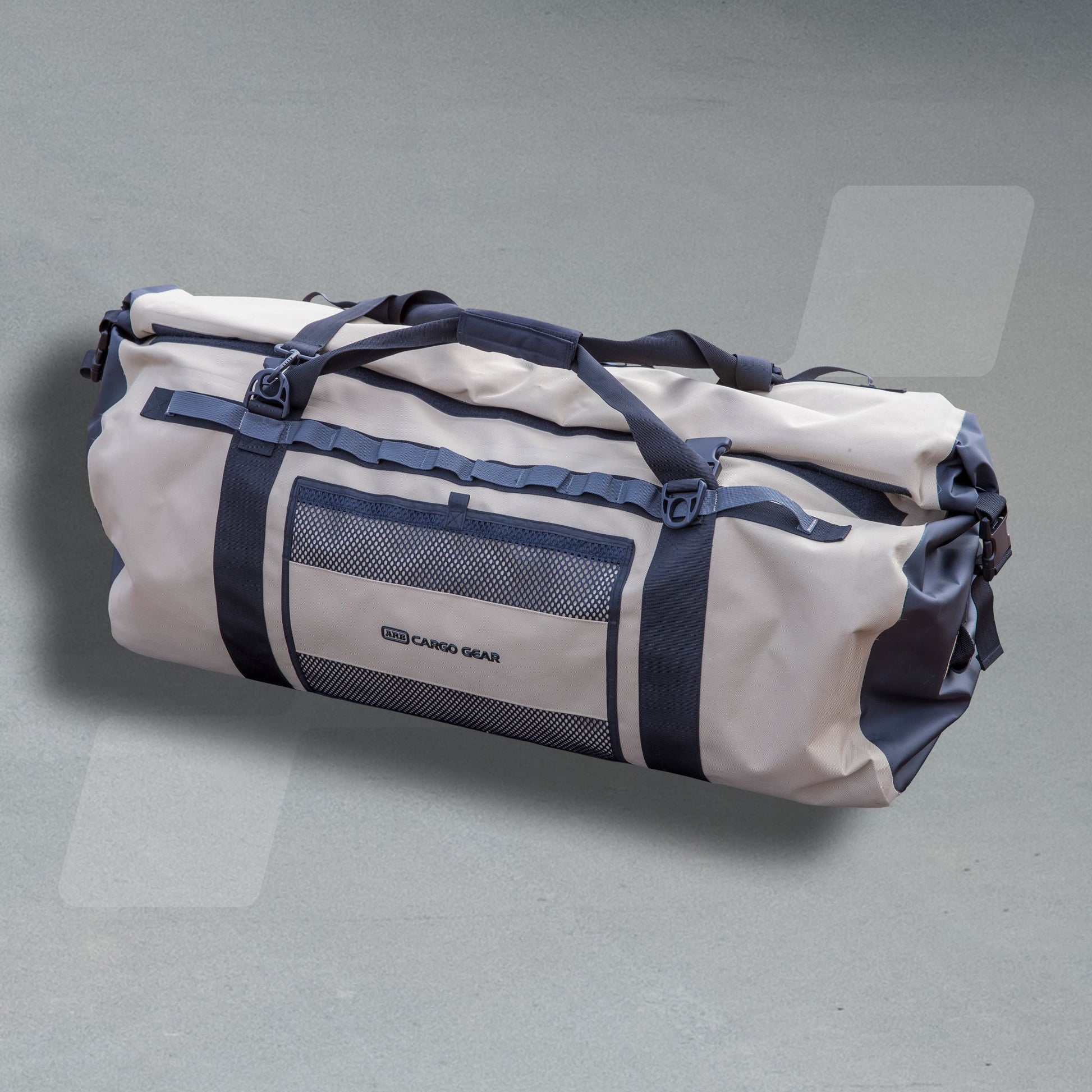 The ARB Stormproof bags have a large roll-up (non-zip) opening - perfect access for packing and unpacking your contents. This unique roll-up opening with side tie down buckles creates a waterproof and dustproof environment, allowing you to store your cargo bag outside or transport it on your ARB roof rack. All ARB Stormproof bags now feature looped webbing straps on each side of the bag. The larger end loops accommodate tie down straps to retain your bag on the roof rack during transport with the other loop webbing straps suitable for attaching additional gear or hooks to the exterior of your ARB bag.