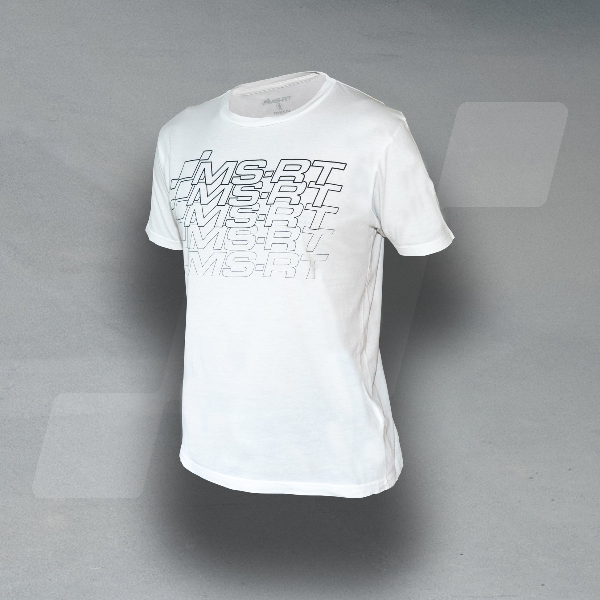 MS-RT branded t-shirt with white stacked logo printed on the chest. Made from cotton, show your or someone else's appreciation for MS-RT in comfort and style.