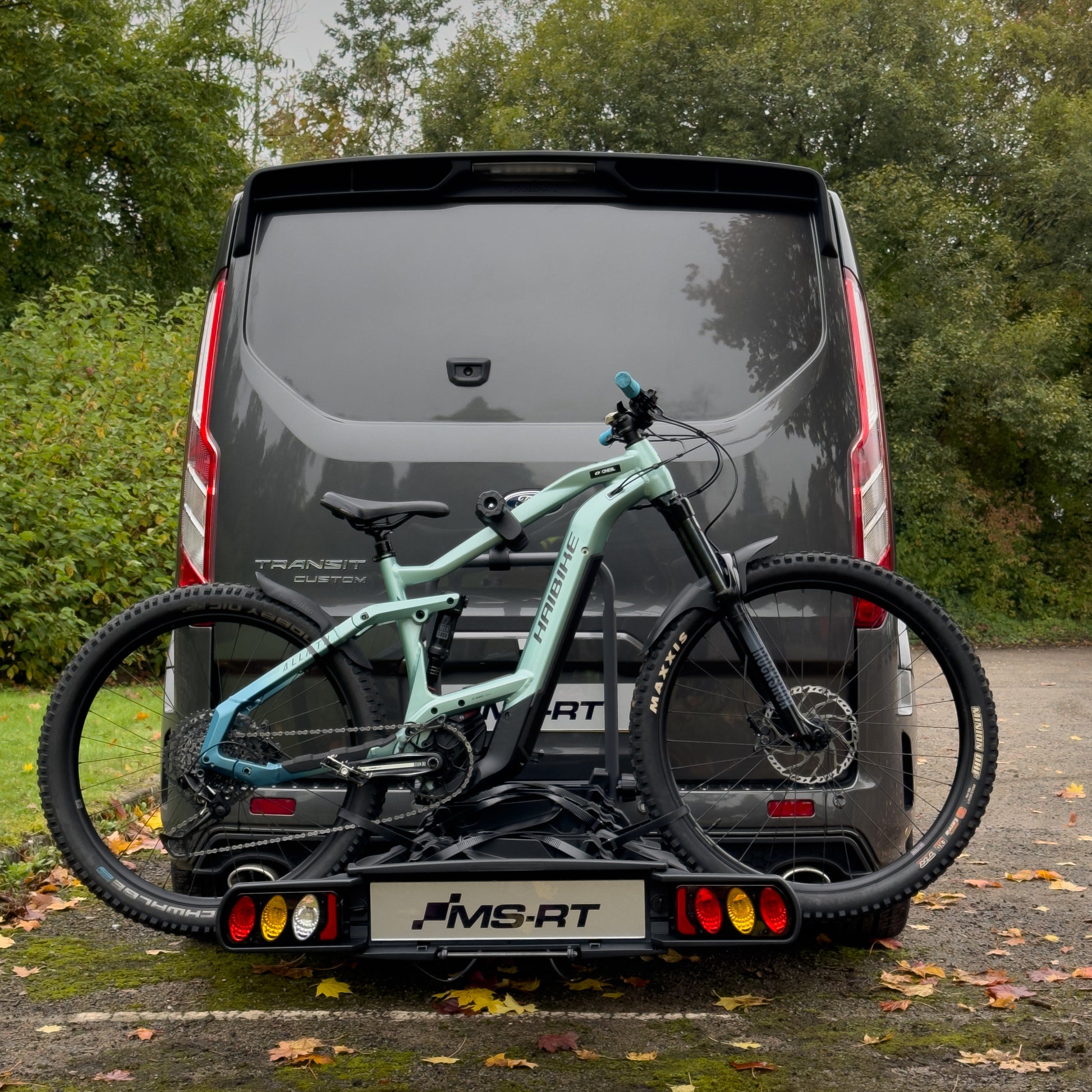 Tilts with cycles loaded for easy access to the vehicle’s boot